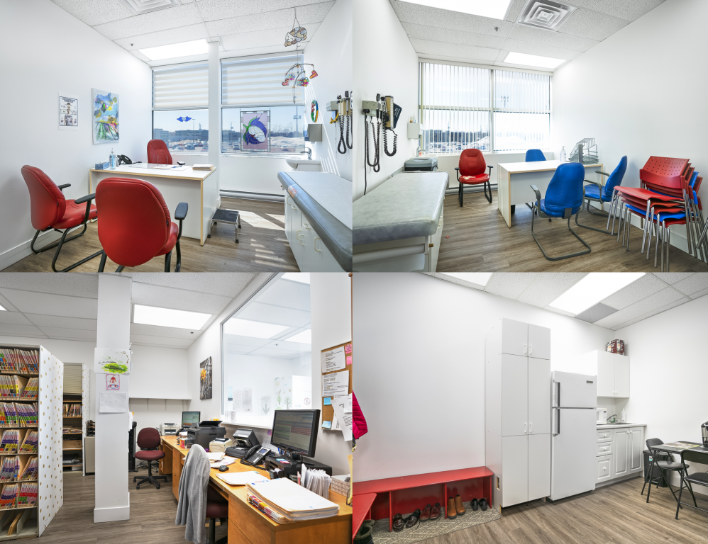 Actuellement aménagé en clinique pédiatrique, cet espace se prête à divers usages grâce à sa configuration flexible.