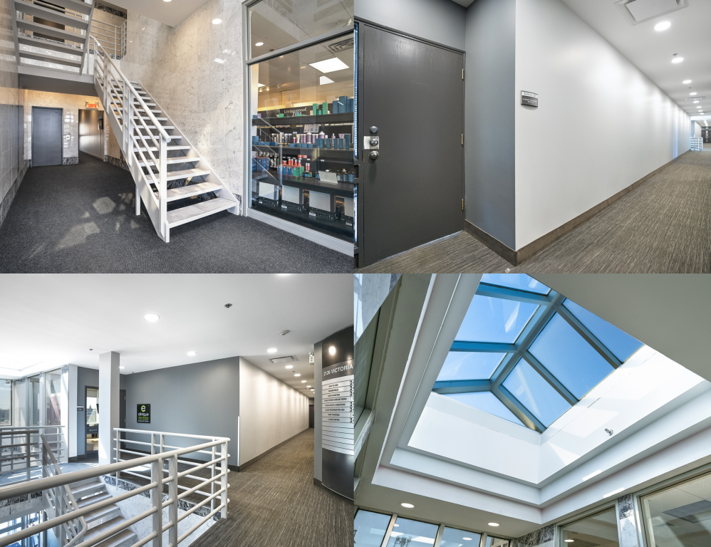 Espace commercial polyvalent de 1 385 pi² situé au 2e étage d’un immeuble moderne, bénéficiant d’une fenestration abondante qui offre une ambiance lumineuse et accueillante.