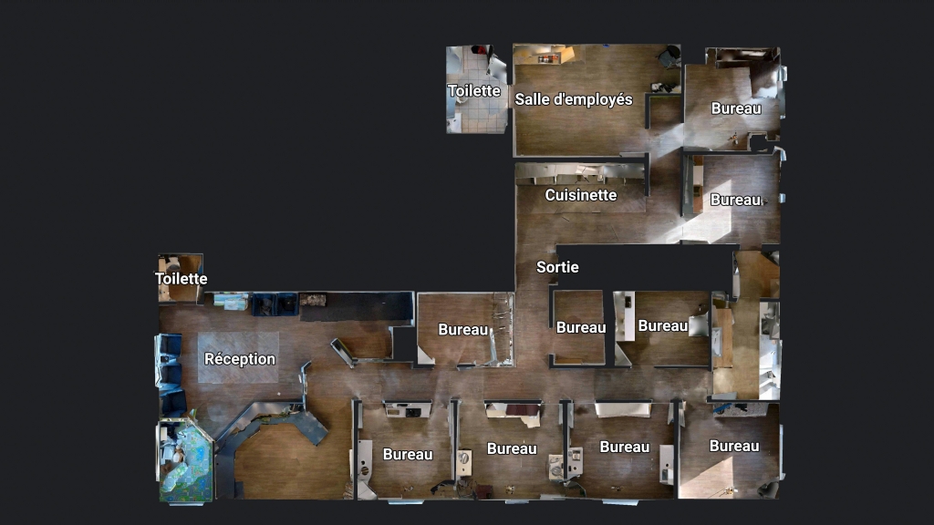 D’une superficie d’environ 2 236 p.c., le local est situé au 2e étage et comprend plusieurs salles de traitement fermés, une aire de réception accueillante, une cuisinette fonctionnelle ainsi que des salles d’eau. L’aménagement favorise une bonne circulation et une séparation efficace des espaces de travail, tout en bénéficiant d’une belle luminosité naturelle grâce aux grandes fenêtres.