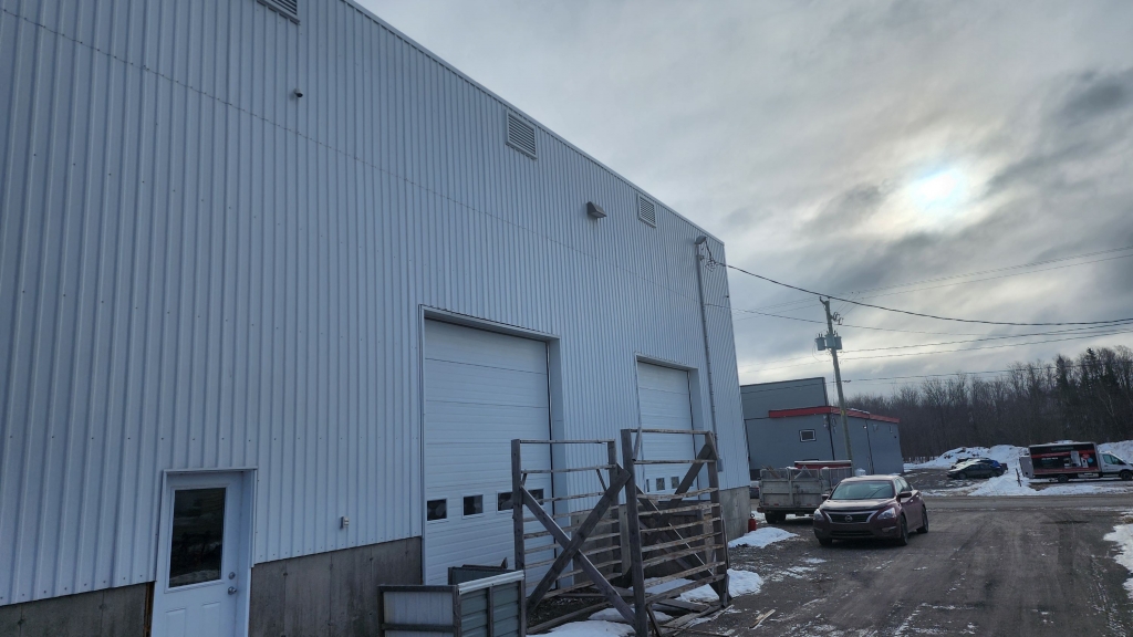 Très beau local industriel 120’ x 40’ avec 5 portes de garage. Chauffé au chauffage aux granulés de bois, éco-énergétique.