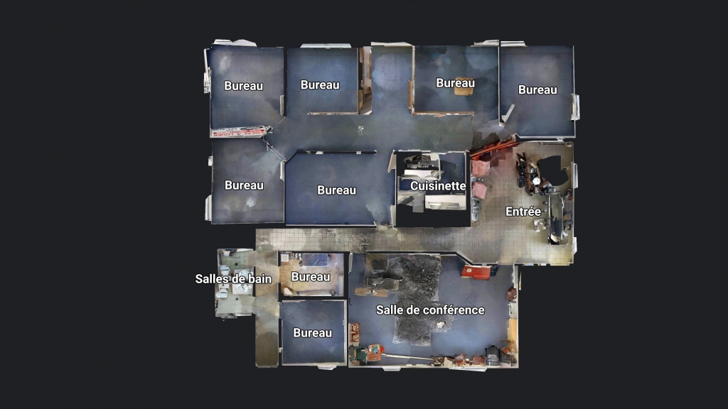 D’une superficie d’environ 2 780 p.c., le local comprend plusieurs bureaux fermés, une salle de conférence, une cuisinette, des salles de bain ainsi qu’un espace d’entrée distinct. La configuration permet une excellente séparation des fonctions, favorisant autant le travail individuel que les rencontres d’équipe.