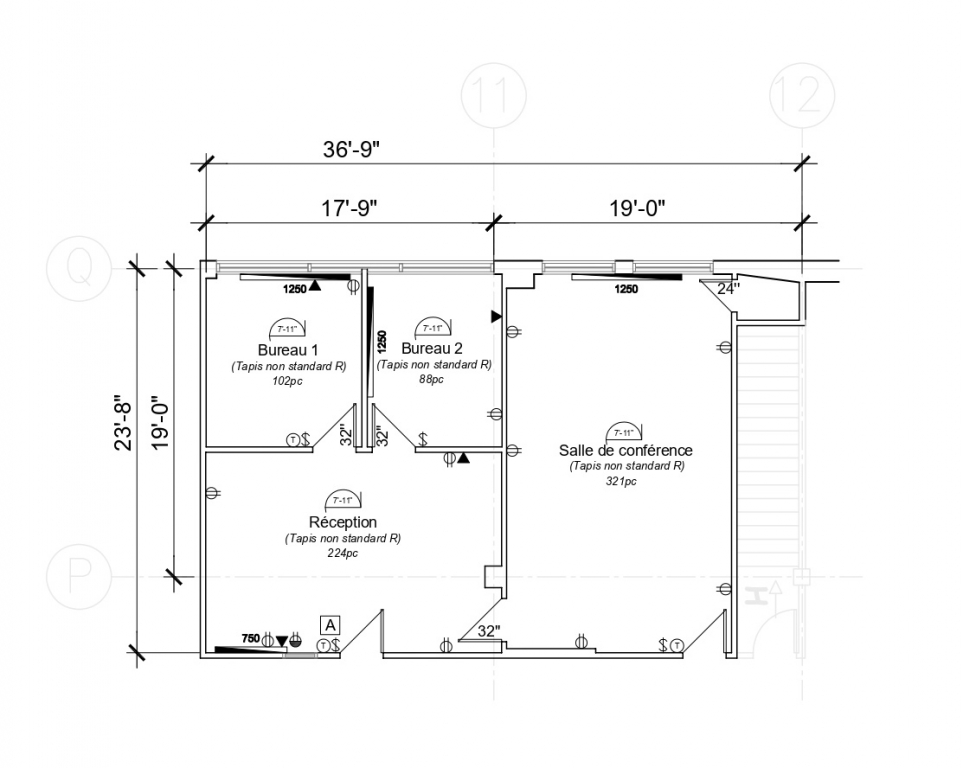 SUPERFICIE 800 PIEDS CARRÉS – ACCEUIL, 2 BUREAUX FERMÉS ET UNE SALLE DE CONFÉRENCE