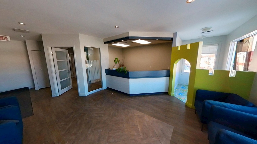 D’une superficie d’environ 2 236 p.c., le local est situé au 2e étage et comprend plusieurs salles de traitement fermés, une aire de réception accueillante, une cuisinette fonctionnelle ainsi que des salles d’eau. L’aménagement favorise une bonne circulation et une séparation efficace des espaces de travail, tout en bénéficiant d’une belle luminosité naturelle grâce aux grandes fenêtres.